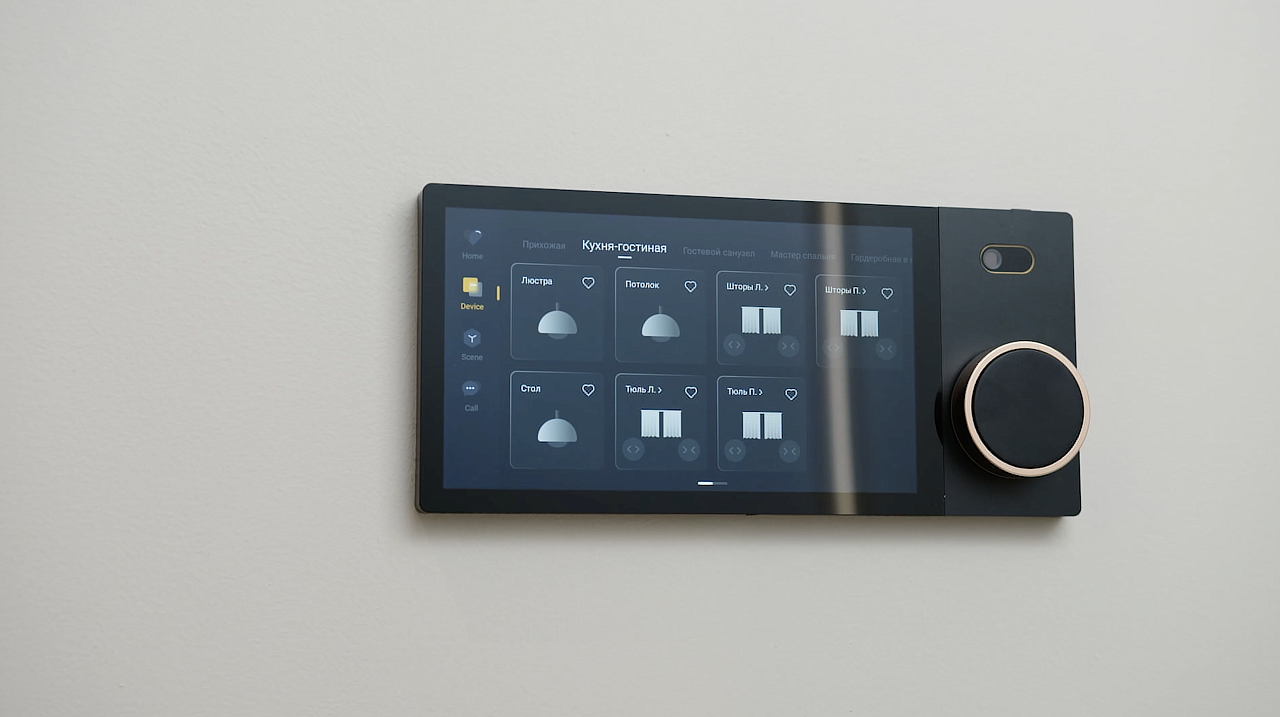 — Гостиная с кухней — управление светом и шторами, климат-контроль.