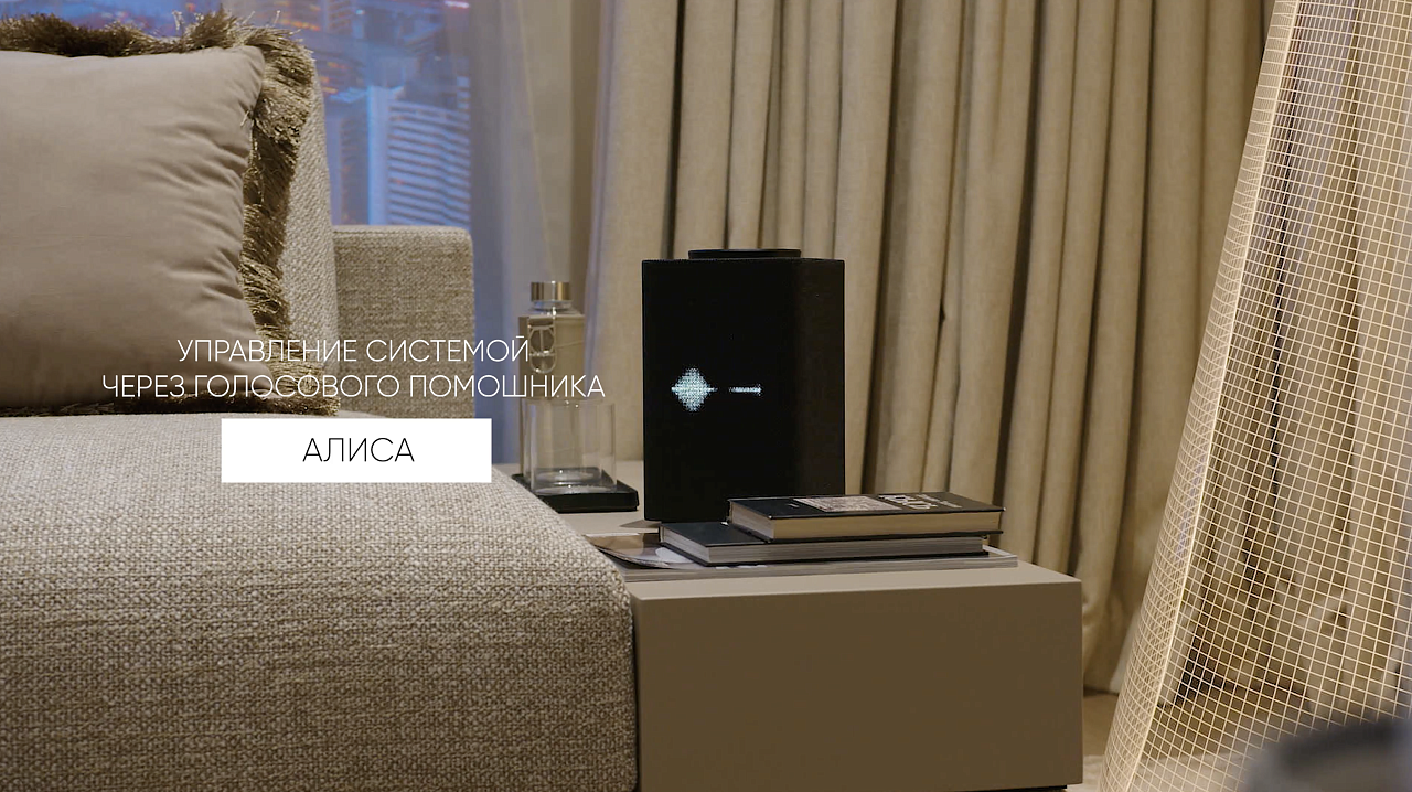 Для локальных зон установлены панели HDL Tile, а также доступно управление через голосового помощника Алису и мобильное приложение HDL ON Pro — из любой точки мира, в любое время.